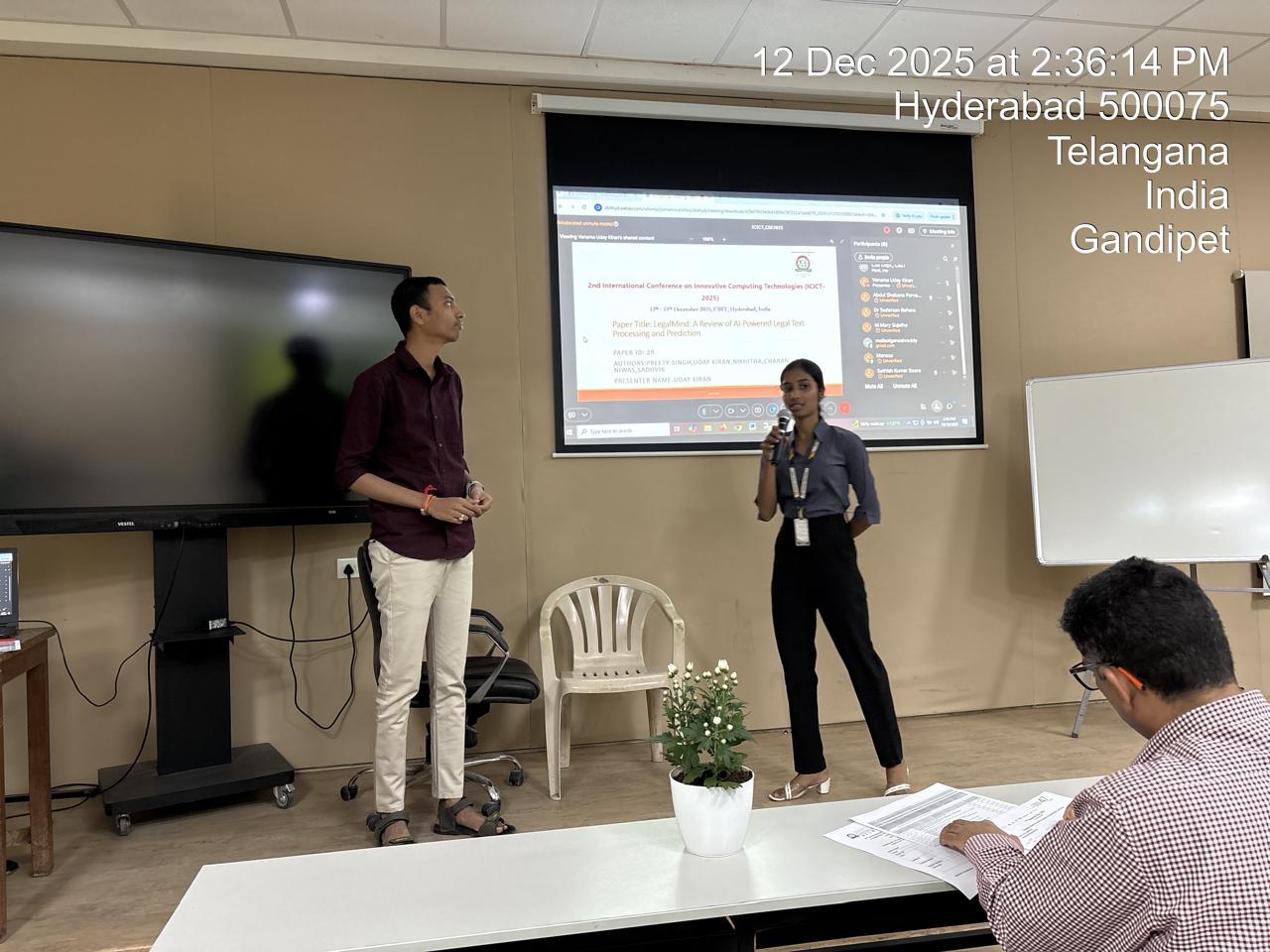 The Department of Computer Science and Engineering and Department of Information Technology at Chaitanya Bharathi Institute of Technology(A), Hyderabad successfully organized A Hybrid Mode Second International Conference on Innovative Computing Technologies (ICICT-2025), December 12th and 13th ,2025. The two-day international conference provided a vibrant platform for academicians, researchers, industry professionals and students to exchange ideas and discuss recent advancements in innovative computing technologies. The event witnessed enthusiastic participation and strong academic engagement. The conference featured an inspiring keynote address by Mr. A. Vijay Siddhiraju, Director-Architecture and AI Technologies, who shared valuable insights on emerging trends, industry-driven innovations, and the evolving role of Artificial Intelligence in modern computing systems. A total of four sessions were conducted for the presentation of articles. the technical sessions were effectively chaired by eminent academicians. Prof. K. Supreethi, Professor & Head, CSE, JNTUH, Hyderabad. Dr. Suresh Reddy, Professor & Head CSE. VNRVJIET. Hyderabad. Dr. T. Panduranga Vita, Professor, Aditya Institute of Technology and Management,Tekkali, AP, and Dr. Prasanth, Associate Professor, IT Dept, Vasavi College of Engineering, Hyderabad. Their guidance and constructive feedback enriched the technical discussions and paper presentations.