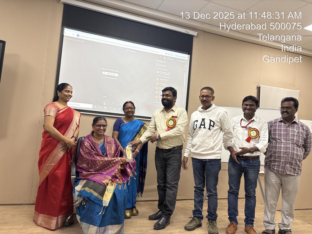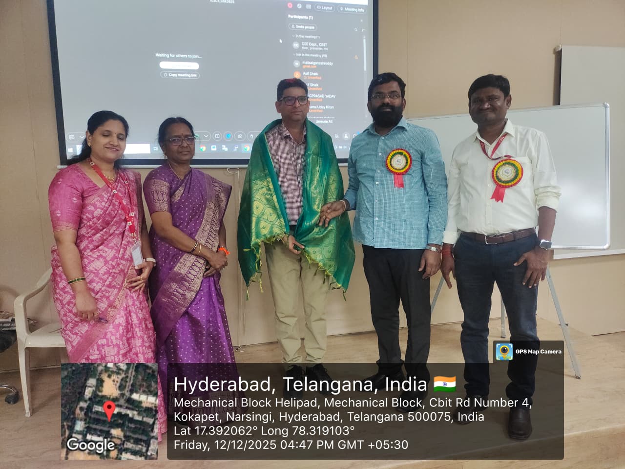 Honouring the Resource Person (left to right: Principal Dr C. V Narashimlu, CBIT(A), Prof. S. Ramanarayana Reddy, (IGDTUW), Delhi, Prof M Swamy Das, CSE, CBIT(A), Prof S China Ramu, HoD, CSE, CBIT(A), Dr K Morarjee, Associate Professor, CSE CBIT(A)).