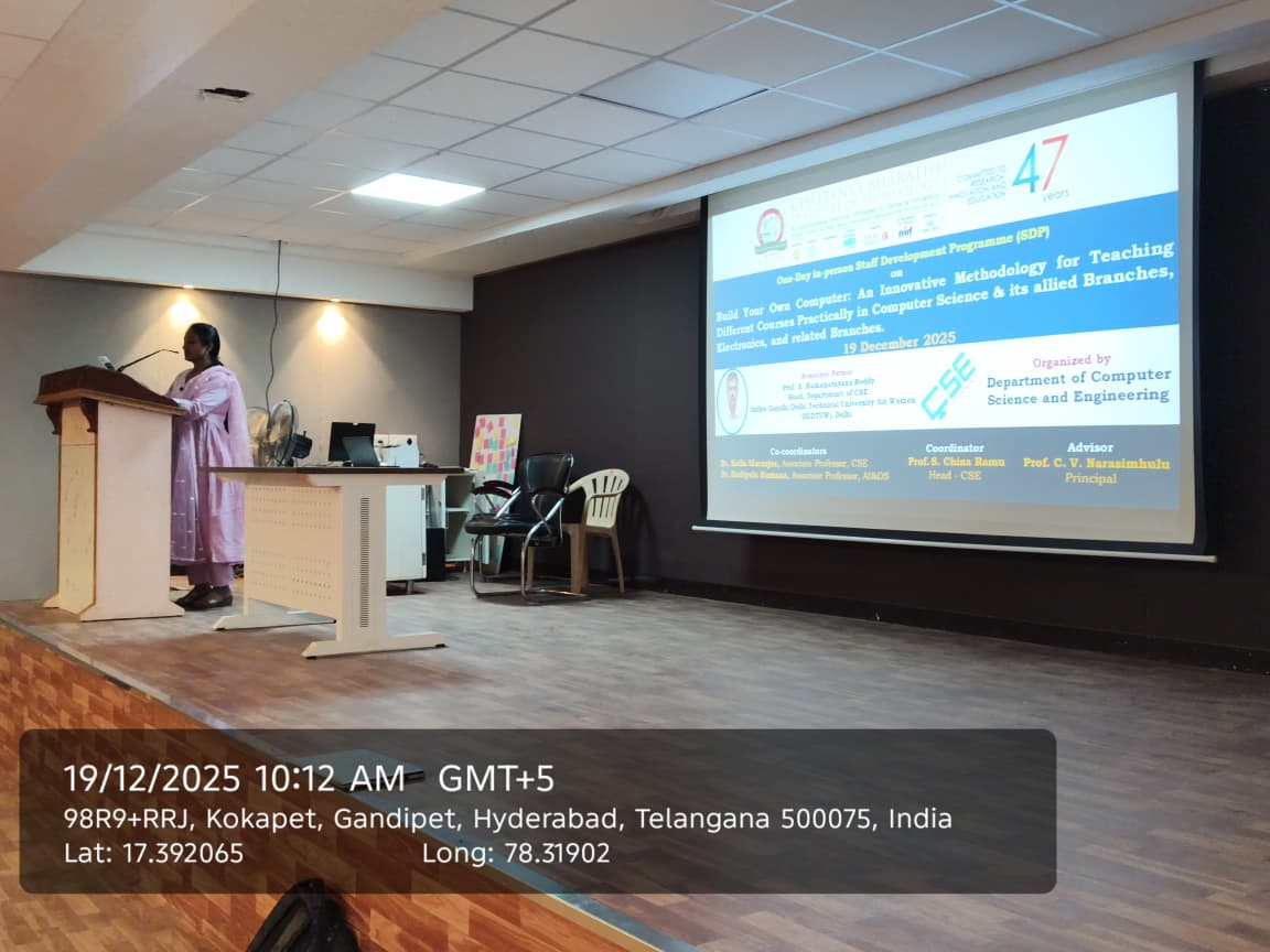 The Department of Computer Science and Engineering at Chaitanya Bharathi Institute of Technology, Hyderabad successfully organized a One day in person Staff Development Programme (SDP) ON “Build Your Own Computer: An Innovative Methodology for Teaching Different Courses Practically in Computer Science and Allied Branches, Electronics, and related Branches” Organized by Department of Computer Science and Engineering, December 19th ,2025. offline mode. The coordinator for this SDP is Prof S China Ramu, CSE, Department. and Co-coordinators are Dr K Morarjee Associate Professor, CSE Department, Dr. Kadiyala Ramana, Associate Professor, AIDS, Department. The primary objective of the Staff Development Program was to introduce faculty members to an innovative, hands-on teaching methodology with enhancing practical understanding of core concepts of CSE and allied branches, ECE, EEE branches, The Program focused on bridging the gap between theoretical instruction and real-world hardware and software integration. This Staff Development Program is for both faculty and supporting staff of CSE and its allied branches, ECE and EEE. The number of participants registered was 144(faculty 87 -supporting staff 57). Dr. M. Anila, Assistant Professor, CSE department hosted the event and gave a brief introduction about resource person Prof. S. Ramanarayana Reddy, Prof and Head, CSE, Indira Gandhi Delhi Technical University for Women (IGDTUW), Delhi.