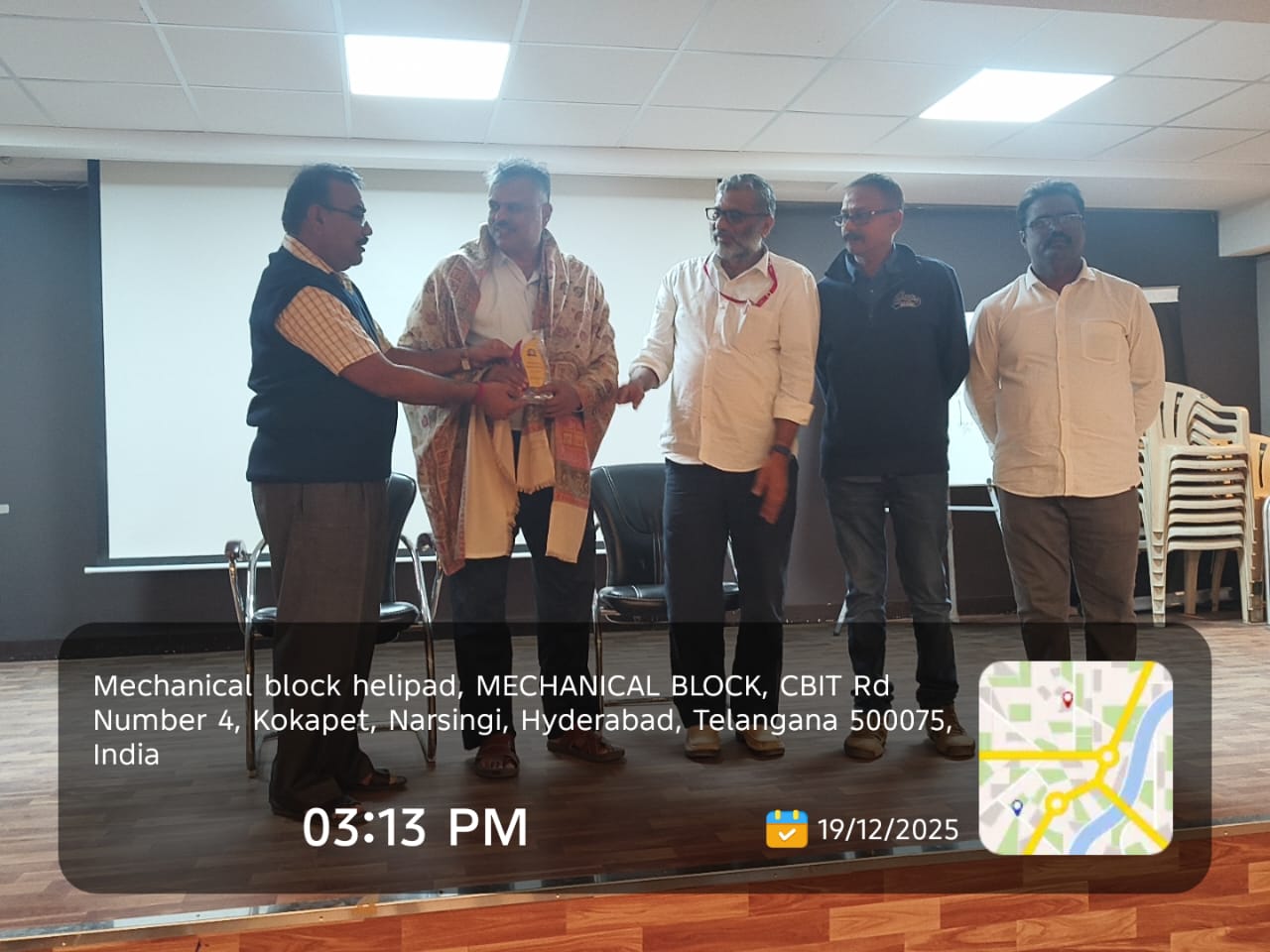 Principal C.V.Narasimhulu felicitating Mr.Varigonda Ravikanth , Founder & CEO of Purple Now Technologies