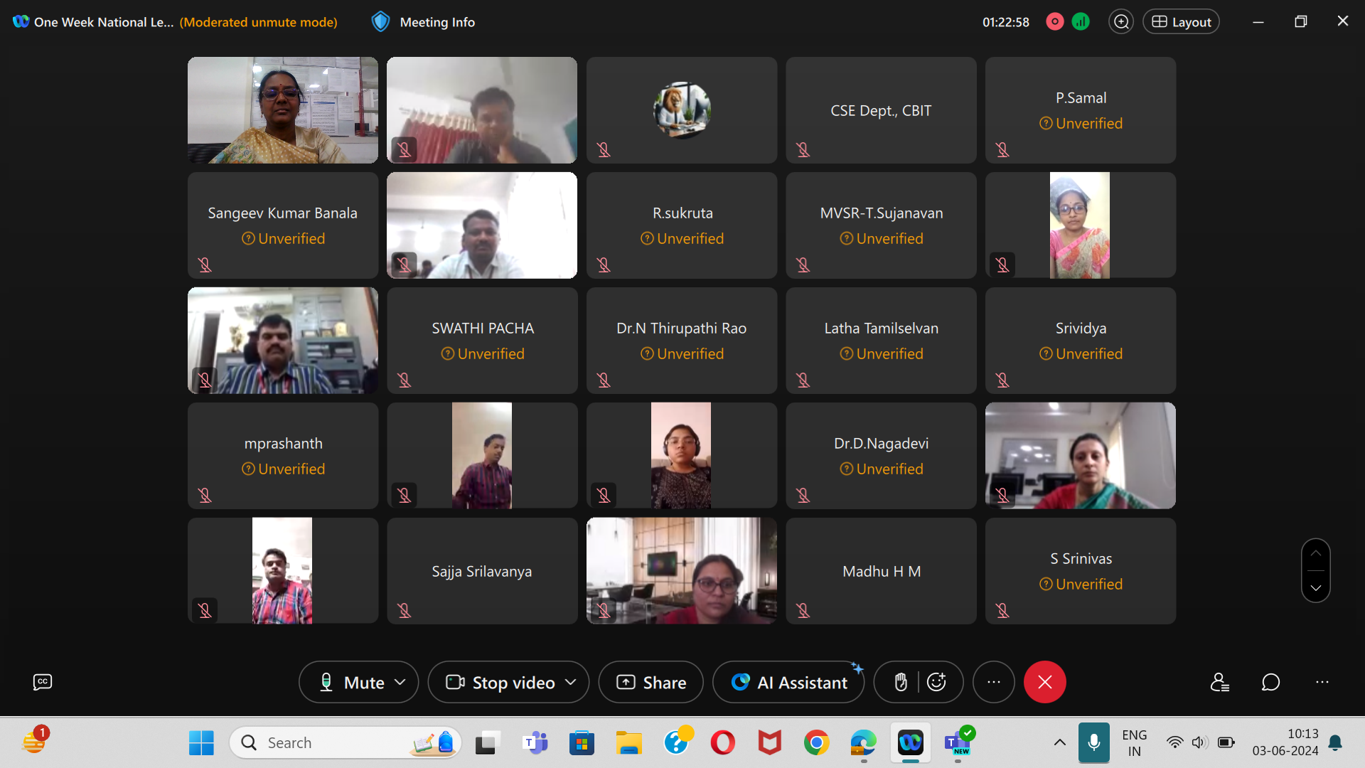 The department of Computer Science and Engineering at Chaitanya Bharathi Institute of Technology, Hyderabad has conducted a 1 week National Level Faculty Development Programme on “Emerging Research Trends in Computer Science” from April 22nd to 26th, 2024.The convenor for the FDP is Dr.D.Raman, HoD, CSE; coordinator for the FDP is Dr.Sangeeta Gupta, Professor, CSE Department and the co-coordinators are Dr. Kolla Morarjee, Associate Professor, Department of CSE, Dr. B. Ramana Reddy, Assistant Professor, CSE Dept, Mr. M. Venkata Krishna Reddy, Assistant Professor, CSE Dept, Dr. M. Anila, Assistant Professor, CSE Dept.