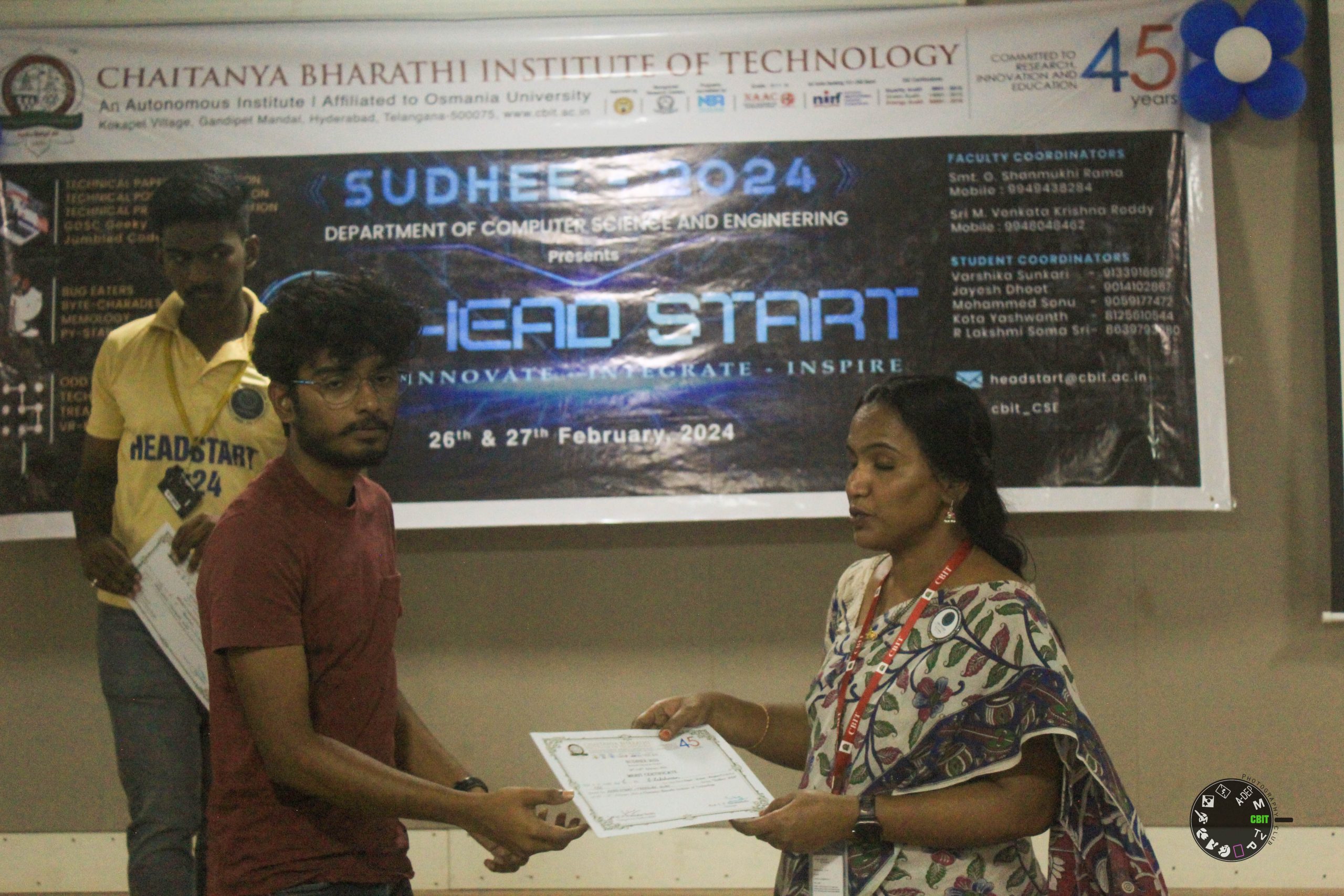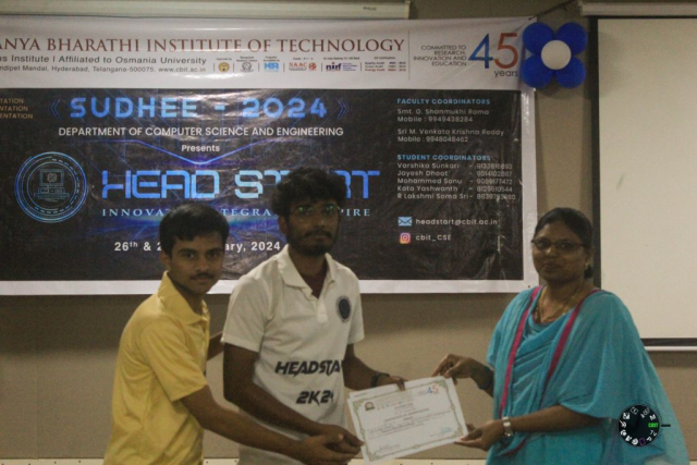 The Computer Science and Engineering department (CSE) of CBIT commenced their Annual Technical Fest SUDHEE 2024 with its theme being “INNOVATE, INTEGRATE, INSPIRE”, for their flagship event HEADSTART 2024.